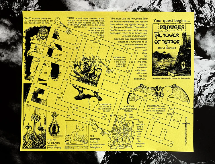 PROTEUS, una rivista pubblicata nel Regno Unito dal 1984 al 1988, pubblicava in ogni numero un’intera avventura interattiva da giocare: si trattava di ingenue esplorazioni di dungeon, ricerche di tesori piene di bizzarrie, enigmi strani e mostri assurdi.